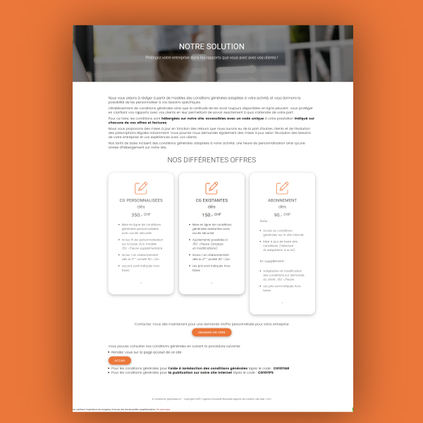 Nous créons des conditions générales adaptées à votre activité, et vous donnons la possibilité de les personnaliser à vos besoins spécifiques.
