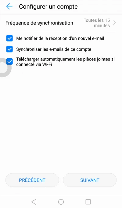 Vérifier et cocher les paramètres du compte, cliquer Suivant