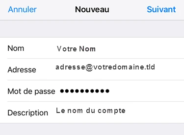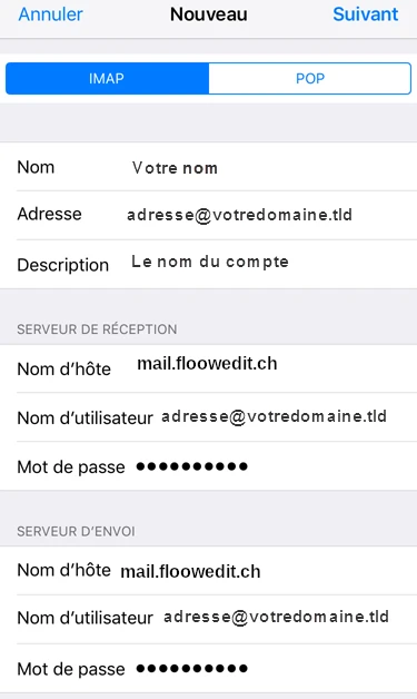 Choisir IMAP, remplir les informations et cliquer Suivant