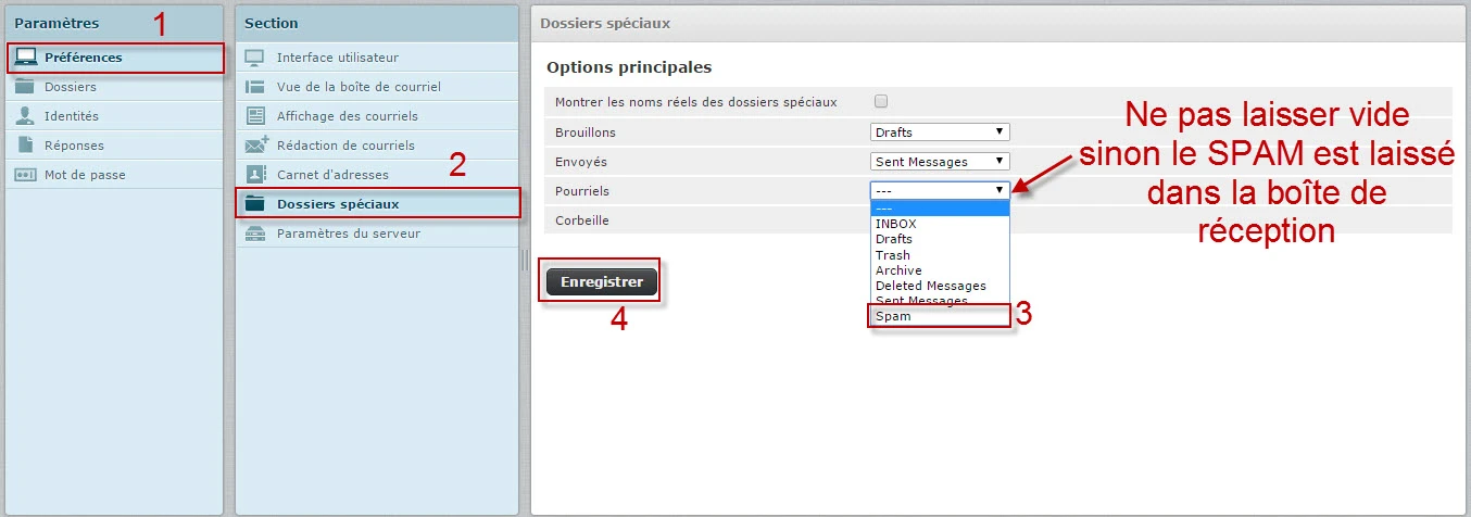 Il est possible que des emails non publicitaires soient classés comme spam. Si vous choisissez de les supprimer directement, vous pourrez perdre certains mails.