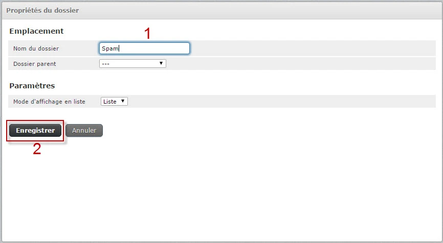 Saisir Spam comme nom du dossier, cliquer Enregistrer