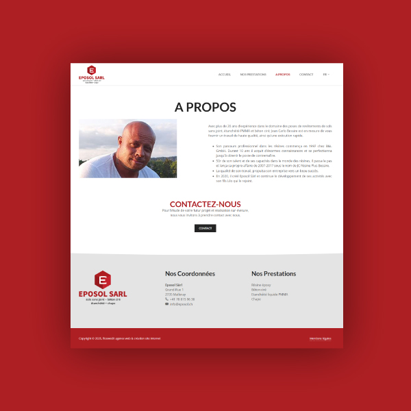 Avec plus de 20 ans d'expérience dans le domaine des poses de revêtements de sols sans joint, étanchéité PMMA et béton ciré; Jean Carlo Bessire est en mesure de vous fournir un travail de haute qualité, ainsi qu'une exécution rapide.